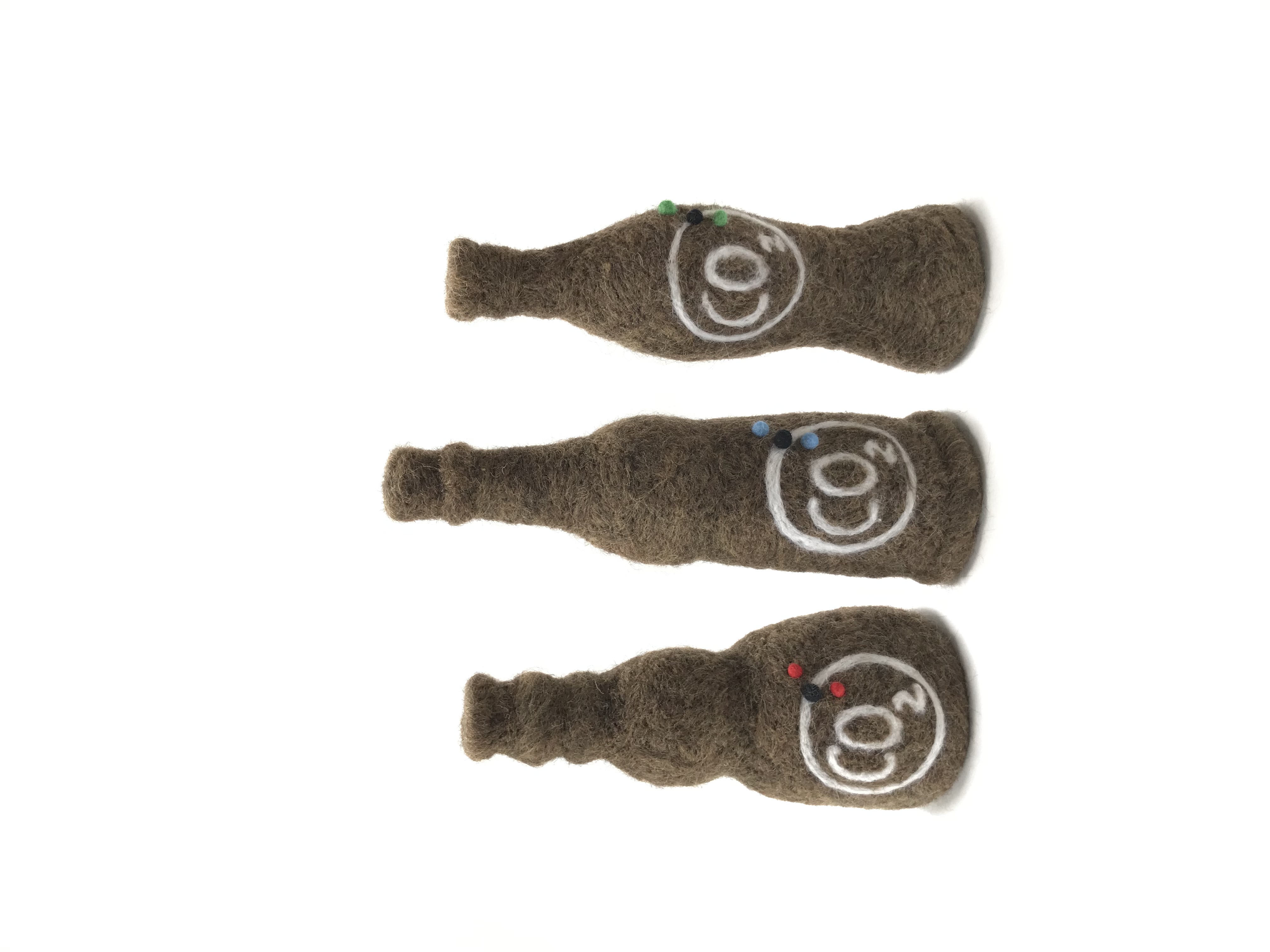 In het project ‘Gebotteld leven’ zijn organische vormen, de vier elementen en klimaatreflecties vormgegeven in gevilte flessen gemaakt van uitsluitend natuurlijk materiaal. De aanvankelijk gemaakte flessen hebben als thema het bottelen van CO2, de emissie van koolstofdioxide in onze lucht wordt letterlijk gevangen in een fles.